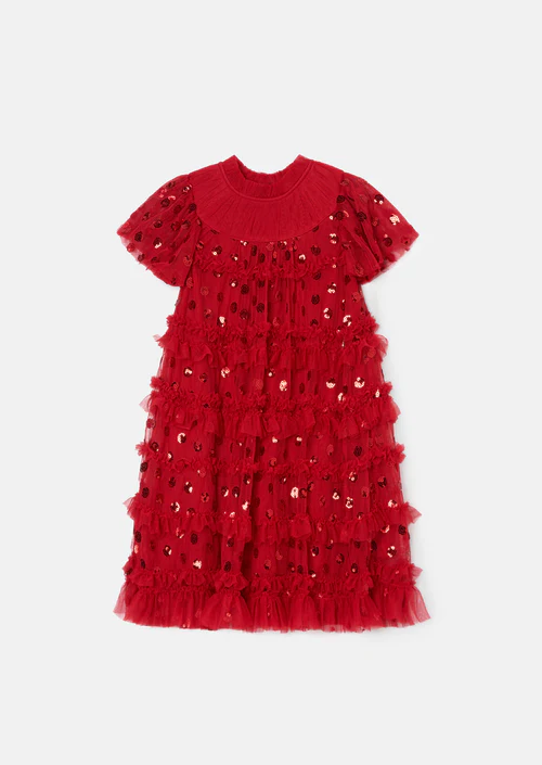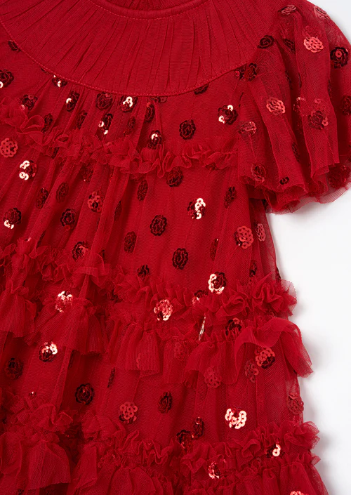 Delphine Red Sequin Mesh Dress
