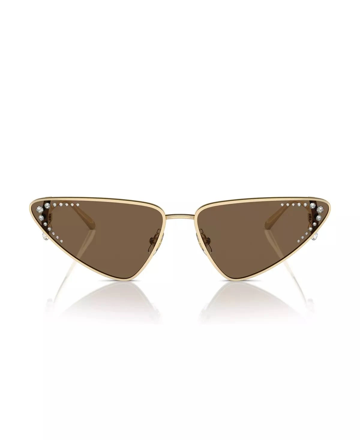 Elevate your style with Jimmy Choo JC4001B sunglasses in pale gold. These iconic cat eye frames, featuring a solid dark brown lenses, add an extra touch of sophistication to the design. Crafted in metal material and boasting strass on the frame, these shades exude luxury and elegance. The perfect accessory for those who want to make a statement without saying a word.