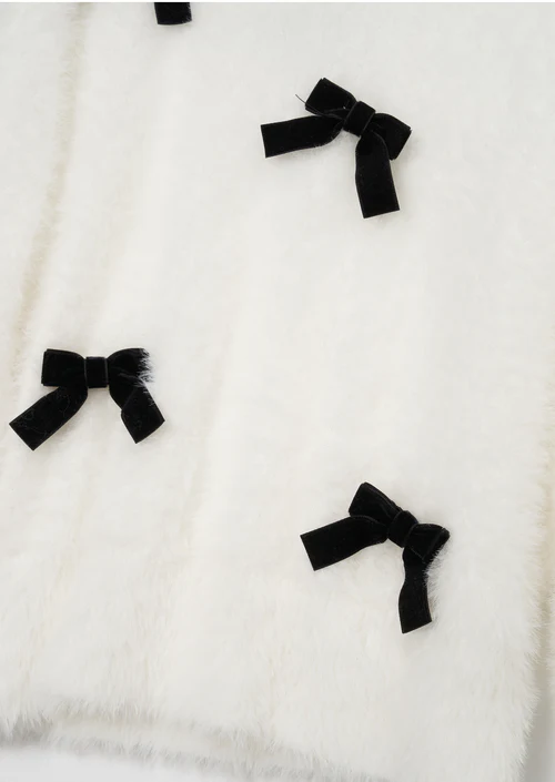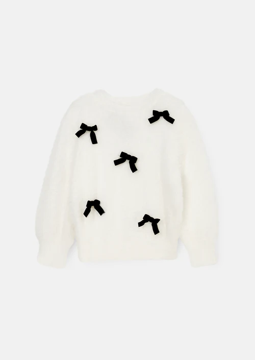 Mia Ivory Velvet Bow Fluffy Jumper