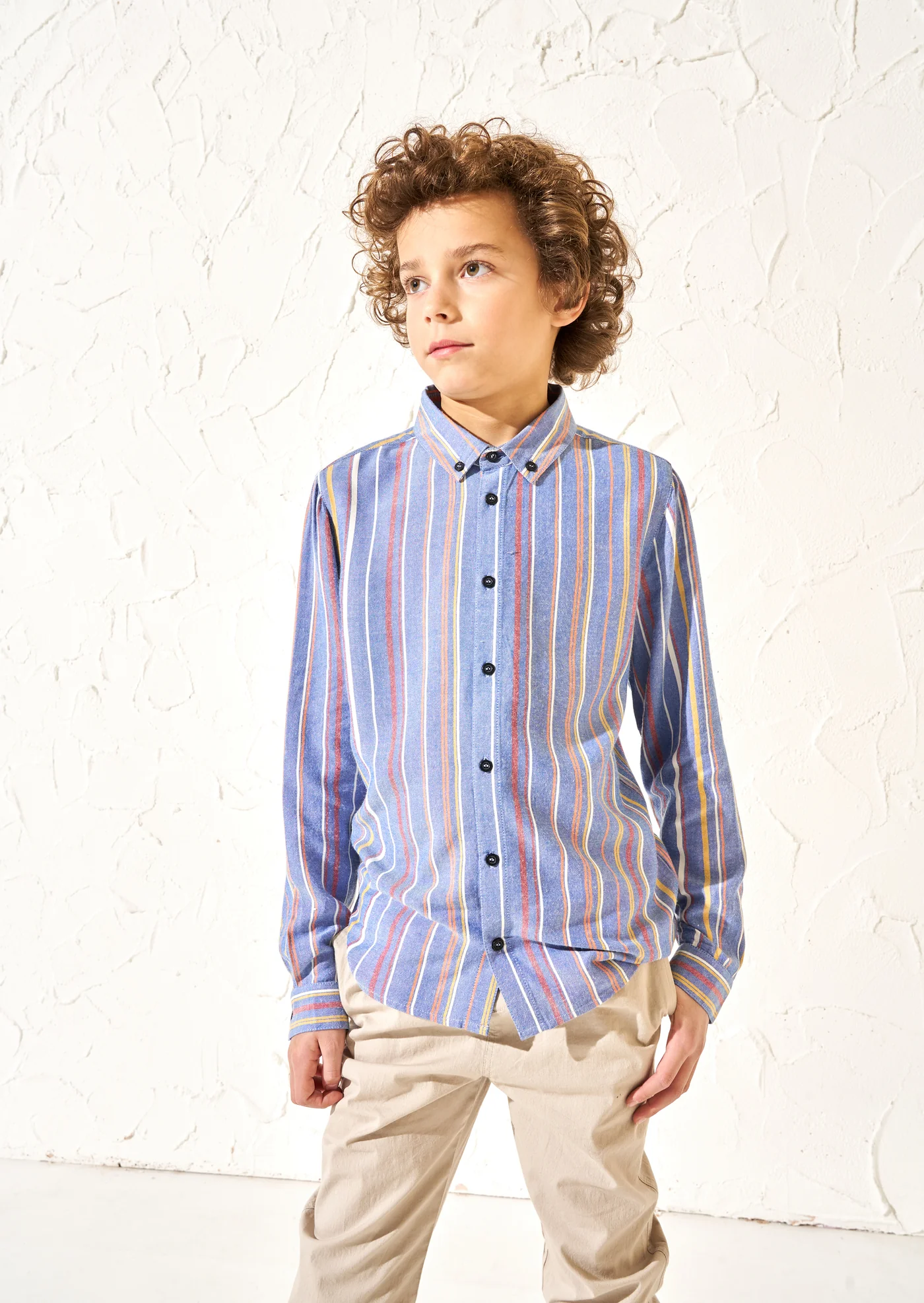 Our new multi stripe shirt is crafted from 100% viscose to give a smart profile. Regular cut with a button down collar, patch pocket and high build logo on back neck. Timeless.